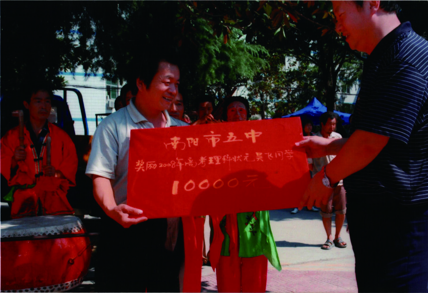 2008级学生吴飞为当年南阳理科状元,考入北大医学系,五中奖励该生10000元。...