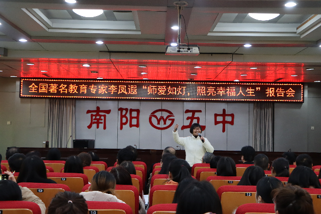 3月4日上午,我校有幸邀请到知名教育专家李凤遐老师在学校三楼小报告厅,为我们作了一场精彩纷呈的报告,报告的主题为“师爱如灯,照亮幸福人生”。报告会由副校长汪玉才同志主持,学校全体领导、全体青年教师参加。整场报告会李凤遐老师一气呵成、一站到底、精神饱满、激情四射、幽默风趣、金句频出,博得了我校教师阵阵热烈的掌声。报告会结束,大家都有醍醐灌顶、意犹未尽之感。