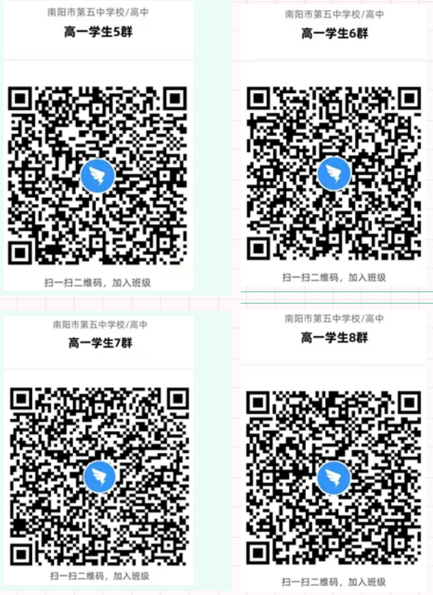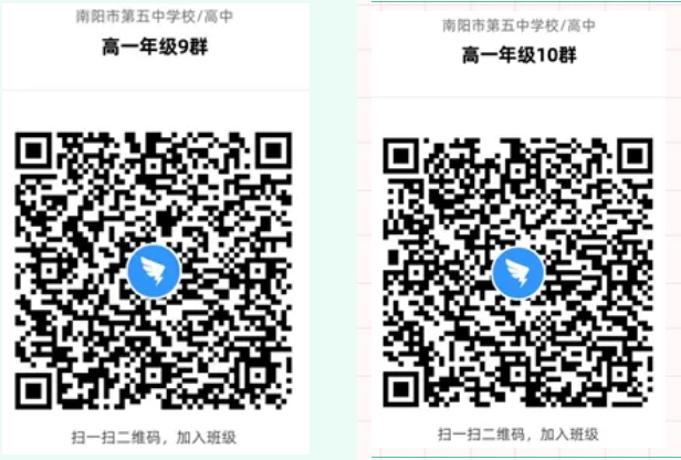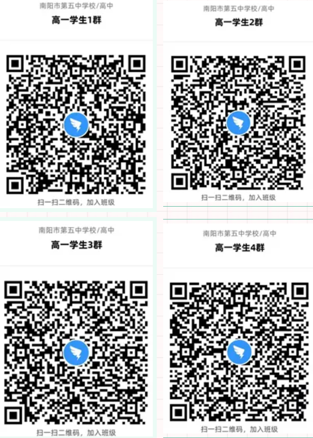 二、注册完成后,请扫描二维码进入南阳市五中2021级高一新生钉钉群,做好线上学习的准备。请加入其中一个钉钉群即可,不要重复加入。