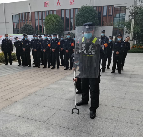 为进一步加强学校安保队伍建设,切实提高学校安保队伍的业务能力和技能水平,筑牢校园安全防线,10月28日上午九点,我校特邀新区特警支队三大队王文方队长带领8名特警来校进行反恐防暴培训。我校高一年级主管校长刘玉茏、两部主任及全体保安、教官、各处室老师参加了本次培训。
