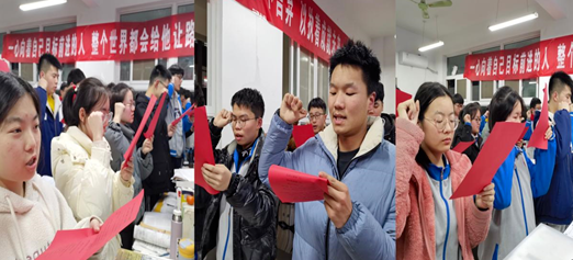 万千骐骥争踏燕,无边霄汉任高飞。焚膏继晷燃日月,劈风破浪斩荆棘。忍于蛹中苦行修,脱化花间逍遥游。海阔凭鱼跃,天高任鸟飞。岂为困难惧,任凭风雨锤。“志当存高远,梦想永无畏。年轻不言败,青春不容悔。一百天,我们唱出心中无悔;一百天,我们笑吟多年等待;一百天,我们跳出平庸牢笼……”集体宣誓的呐喊声,喊出了五中学子们的扎实底气、喊出了五中学子们的凌云之志、喊出了五中学子的必胜信念。