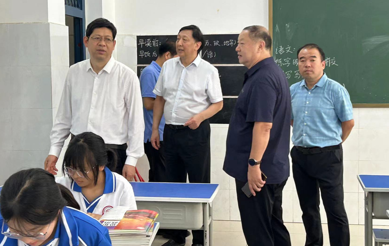 9月1日上午,南阳市政协副主席、市教育局党组书记、局长杨文普带领市教育局党组成员、副局长乔栓旺,语言文字中心主任黄孟照深入南阳市五中三全校区督导秋期开学工作,南阳市五中党委书记王超陪同。