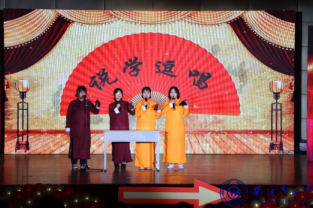 在惊艳开场的歌舞《幸福中国一起走》中,联欢会正式拉开了序幕,优美欣悦的歌声、喜庆明媚的舞蹈瞬间点燃了观众的热情;接下来,小品《上学那些事儿》,以轻松幽默的形式讲述了发生在一个班级的故事,笑点密集、金句频出,观众席上笑声掌声不断;舞蹈《触摸天空》代表着时下流行的二次元风格,在轻灵可爱与慷慨热烈之间,绽放出属于青春的独特风采;倾听笛子合奏《牧民新歌》,宛见天朗云清、牧马从容;聆听歌曲《少年中国说》,似有乳虎啸谷、鹰隼试翼;话剧《项链》,融合了现代热梗改编,喜剧色彩十足;国学舞《声律启蒙》,吟唱颇有韵致,汉服衣袂飘扬;配音秀《神奇一甲在哪里》,巧妙融合了动漫人物和普通话水平测试,让大家大饱耳福;舞蹈串烧《solo》以青春动感的舞步,瞬间燃起同学们的热情。