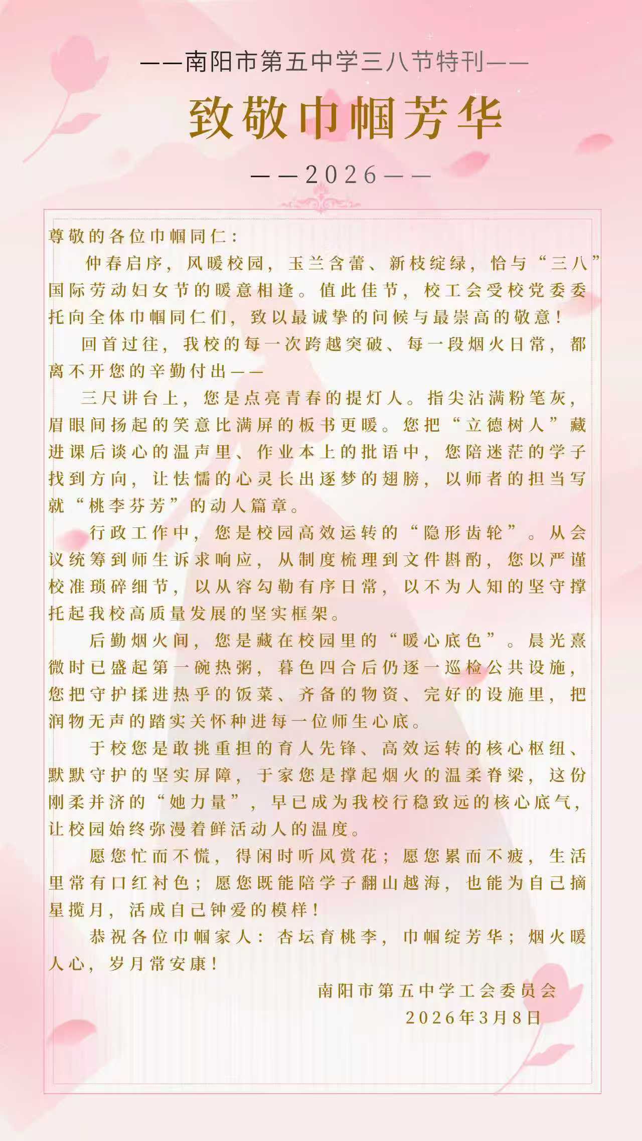 南阳市第五中学三八节特刊——致敬巾帼芳华