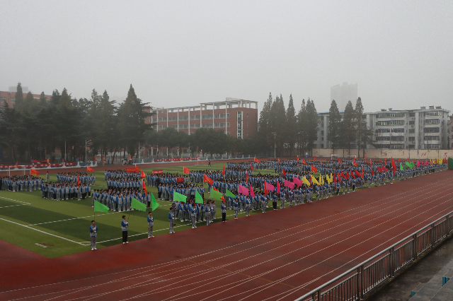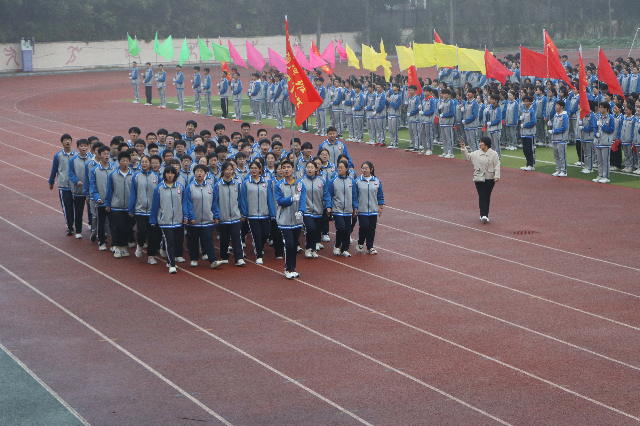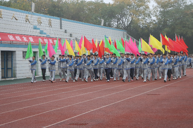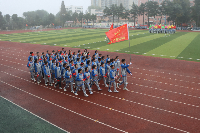 恰同学少年,风华正茂。在激昂雄壮的音乐声中,红旗迎风飘扬,彩旗随风招展,率先步入运动场的是步履铿锵的校旗方队,青春飞扬的彩旗方队,正气凛然的裁判方队。各班代表队在旗手的带领下,在班主任的陪伴下,迈着整齐的步伐依次步入运动场。星火班、鲲鹏班、致远班、善为班……独特的班级代号展现了我校学子向善向美,追求卓越的精神风采。