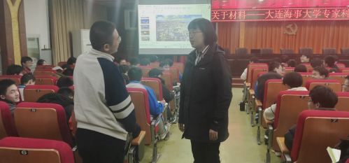 讲座伊始,刘娟教授向学生播放了大连海事大学名为《育鲲成鹏》的宣传纪录片。纪录片展现了大连海事大学厚重辉煌的历史、独具特色的专业、优越的办学条件、优美的校园环境、丰富的教学资源、多彩的社团活动等,让学生对大连海事大学有了一个直观深刻的印象。